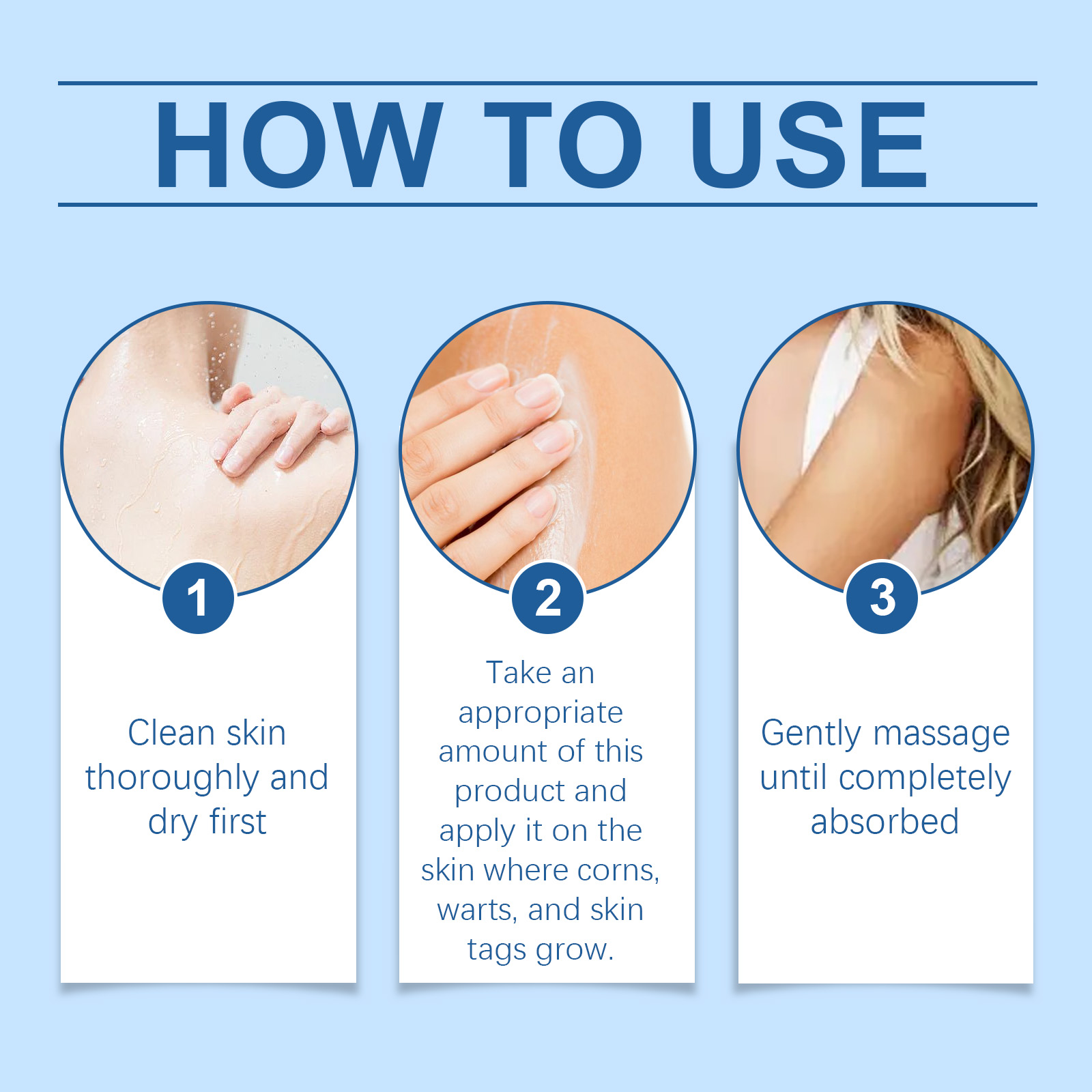 我们的皮肤护理膏含有生育酚(维生素E)、互生叶白千层叶油。它可以能快速去除痣和疣,效果显著。它的使用方法很简单:首先彻底清洁皮肤并干燥,取适量本品涂于长鸡眼、疣、皮签的皮肤,轻轻按摩至完全吸收。并且温和无刺激,适合所有肤质。