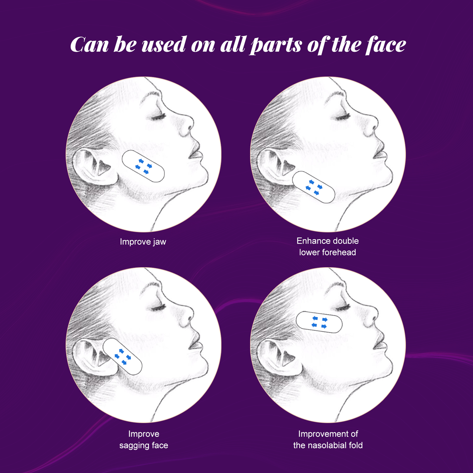我们的脸部隐形提拉贴含有合成橡胶。它有助于提拉塑形,紧实自然,轻松打造瓜子脸。它的使用方法很简单:1.找一个自己想减肥的位置。2.撕下包装膜。3.按一边把皮肤拉在一起,然后紧固另一边把它粘上三秒钟。4.撕下蓝色箭头,适当地抬起,以达到最佳效果。使用后挺拔不断地重塑着精致的瓜子脸,柔和的弧线,富有灵气。