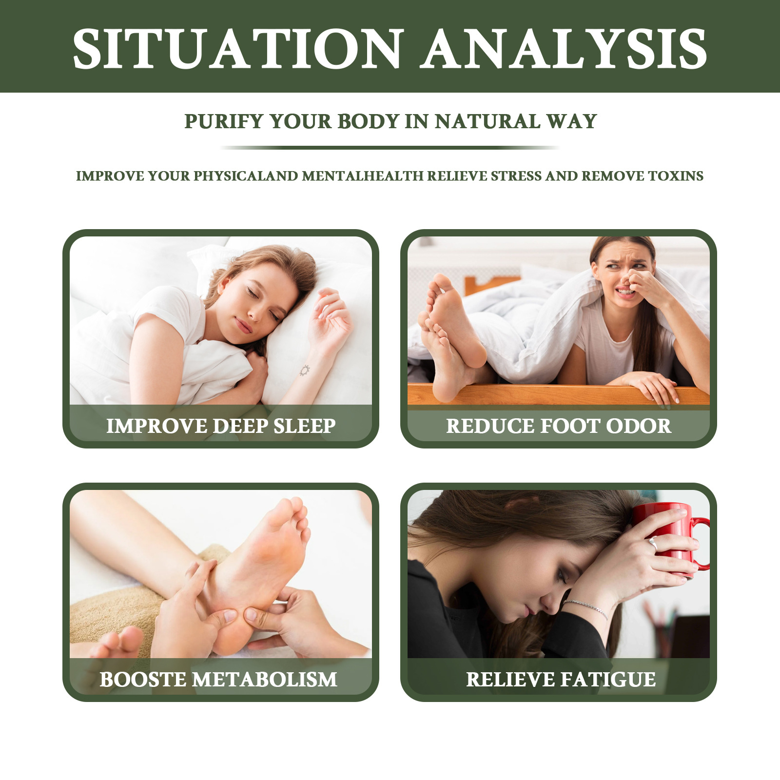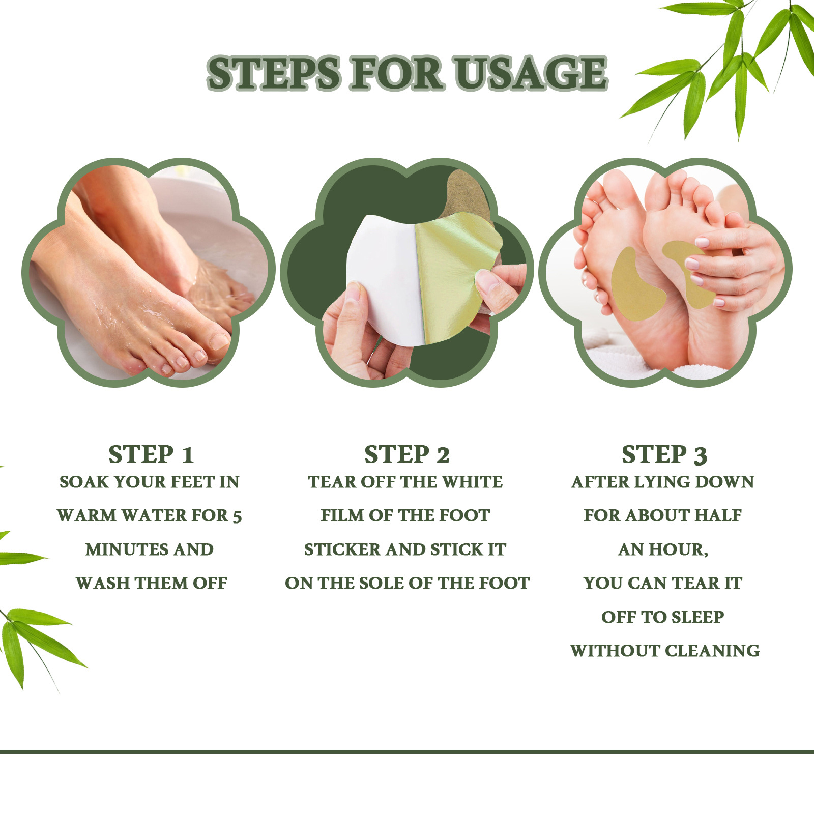 我们的生姜发热足贴含有马钟提取物、竹茎粉。它可以改善睡眠质量,支持身体清除毒素。它的使用方法很简单:将贴片贴于足部中部,柔软的一面应贴于足部皮肤。将第二片贴片贴于另一只脚或您想要清洁的身体其他部位。贴片敷贴6-8小时。建议睡前贴。使用6-8小时后撕下贴片。洗净双足,享受焕然一新的健康。并且可以帮助你确保深度睡眠,让你醒来感觉神清气爽。