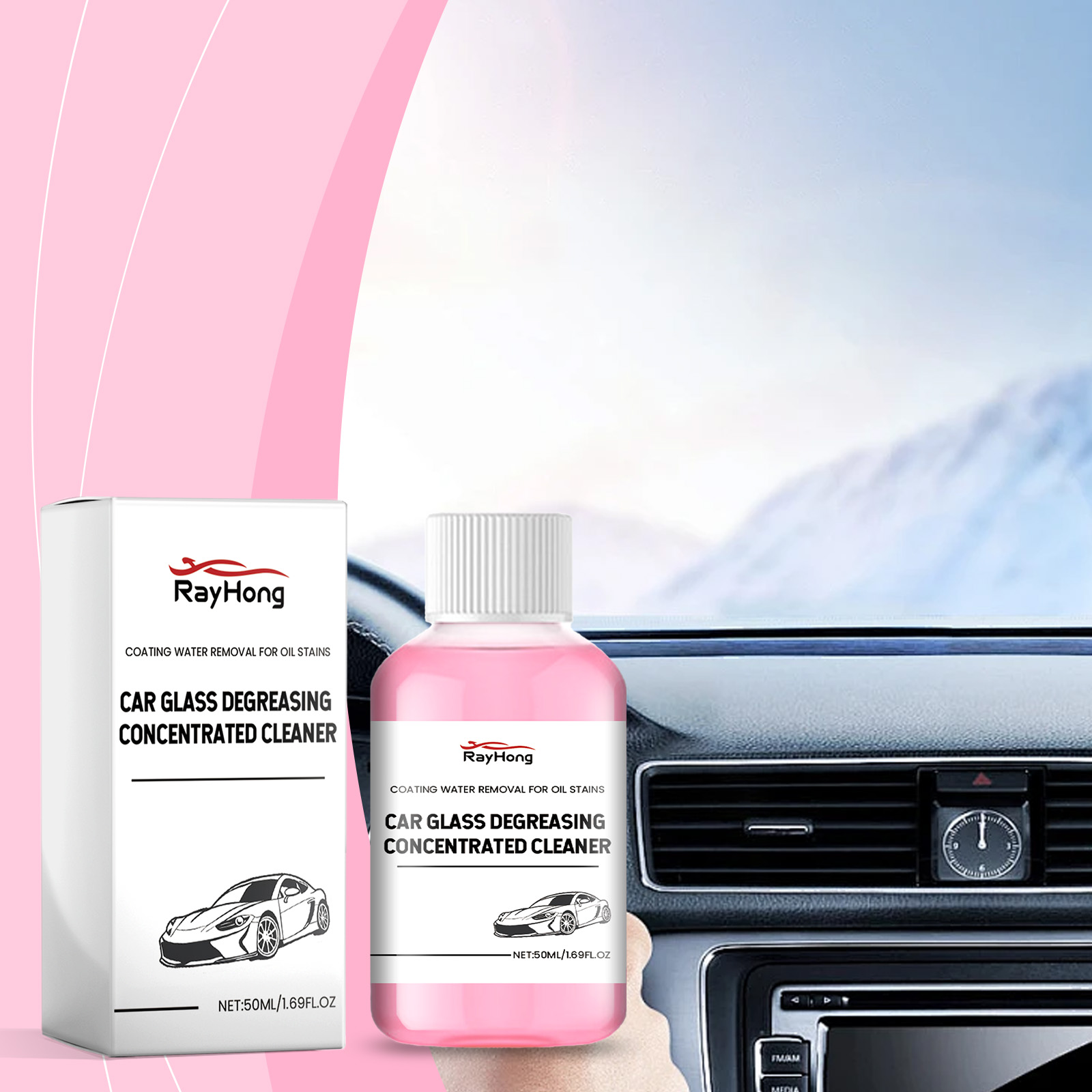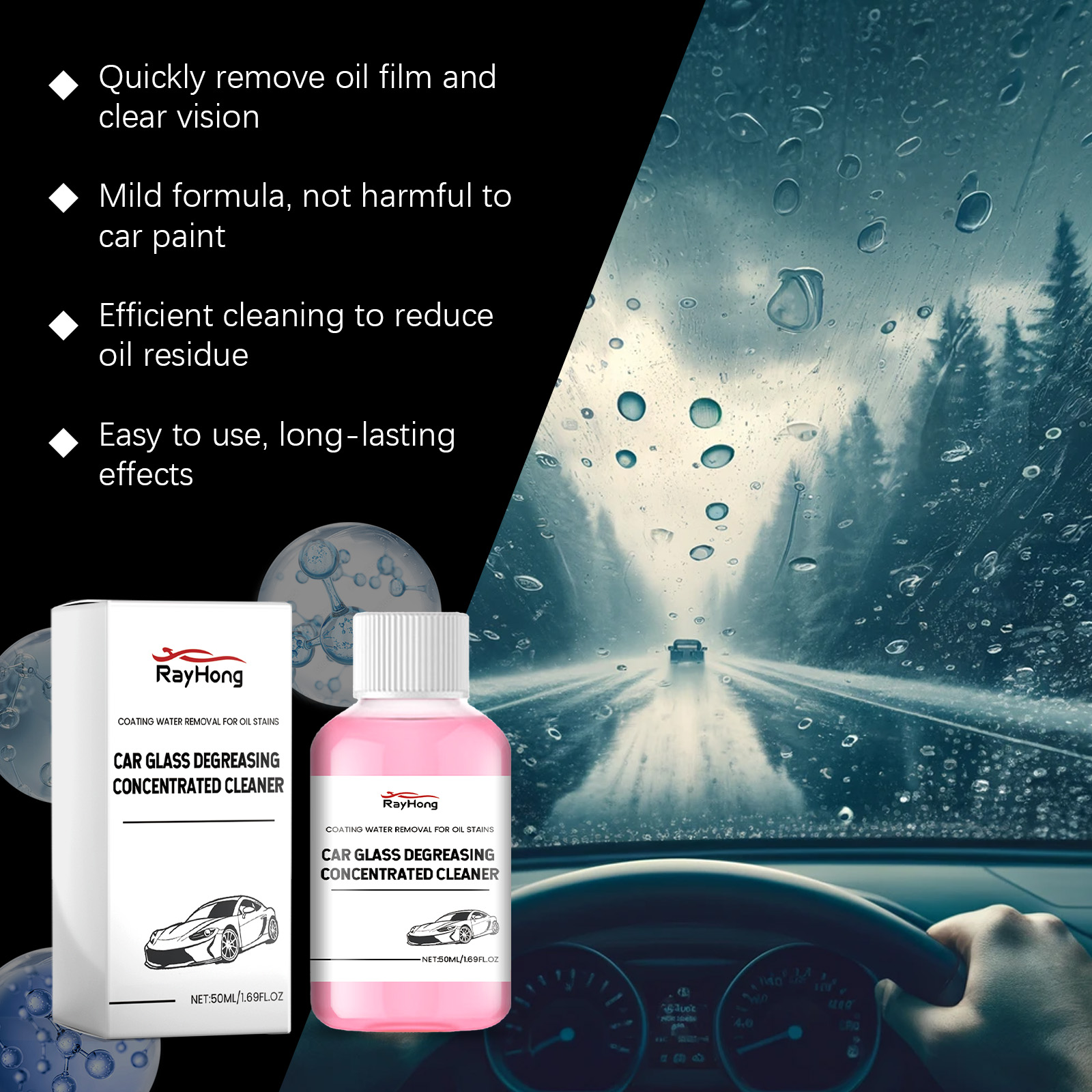 Rayhong Car Glass Cleaner, Car Front Windshield Oil Film Removal Glass Water Oil Film Cleaner