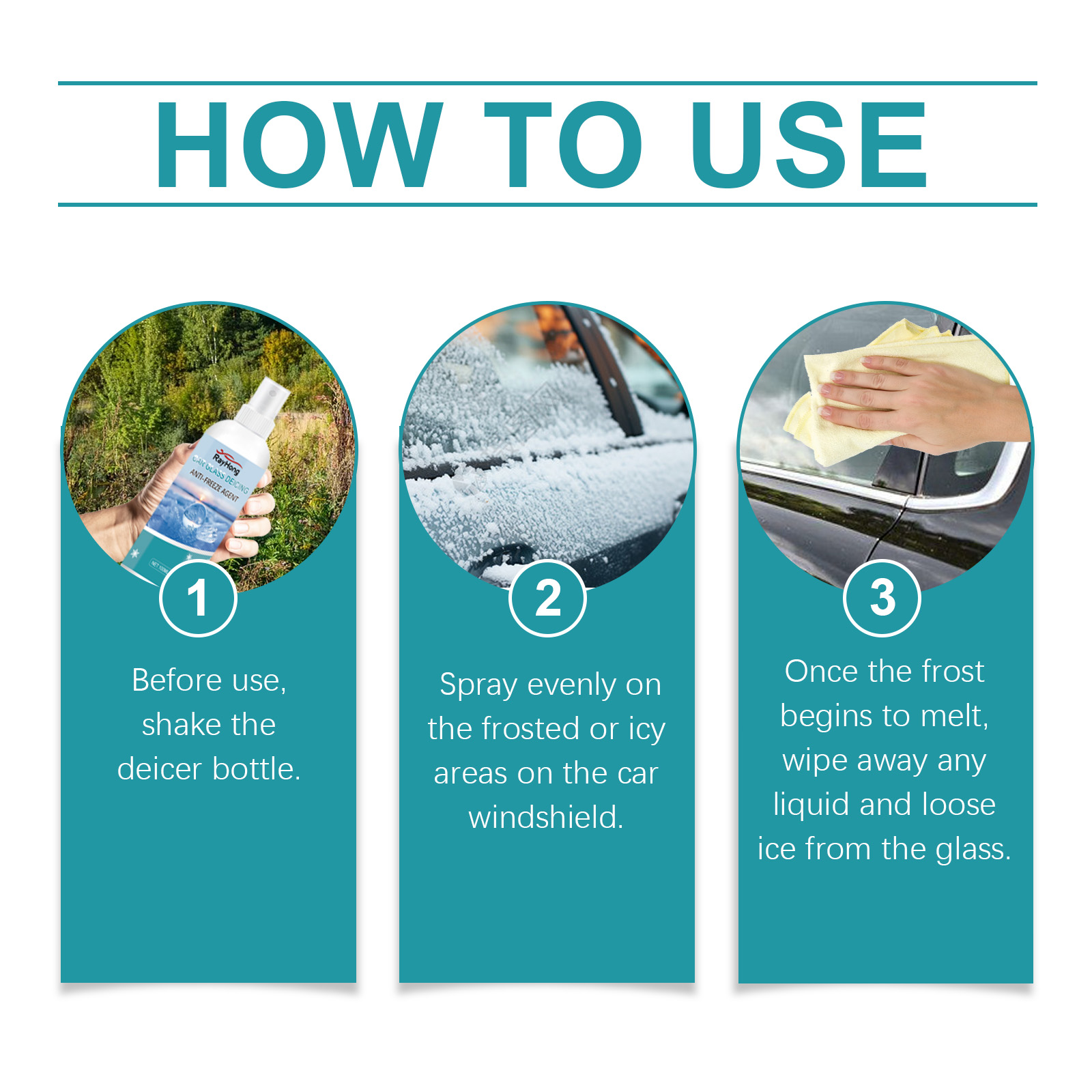 我们的汽车玻璃除冰防冻剂含有渗透剂、异丙醇。它可以为玻璃提供全面保护,防止划痕和老化。它的使用方法很简单:使用前,摇动除冰剂瓶,均匀喷洒在汽车挡风玻璃上结霜或结冰的地方。一旦霜开始融化,就把玻璃上的液体和松散的冰擦掉。并且可以有效防止玻璃结冰适应恶劣的寒冷环境,确保行驶平稳。