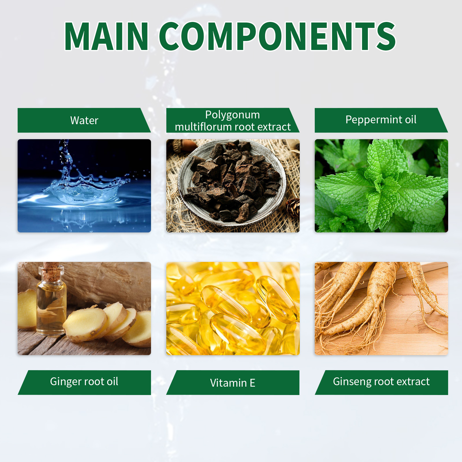 | 成分 | 何首乌根提取物,人参提取物,姜根油 |