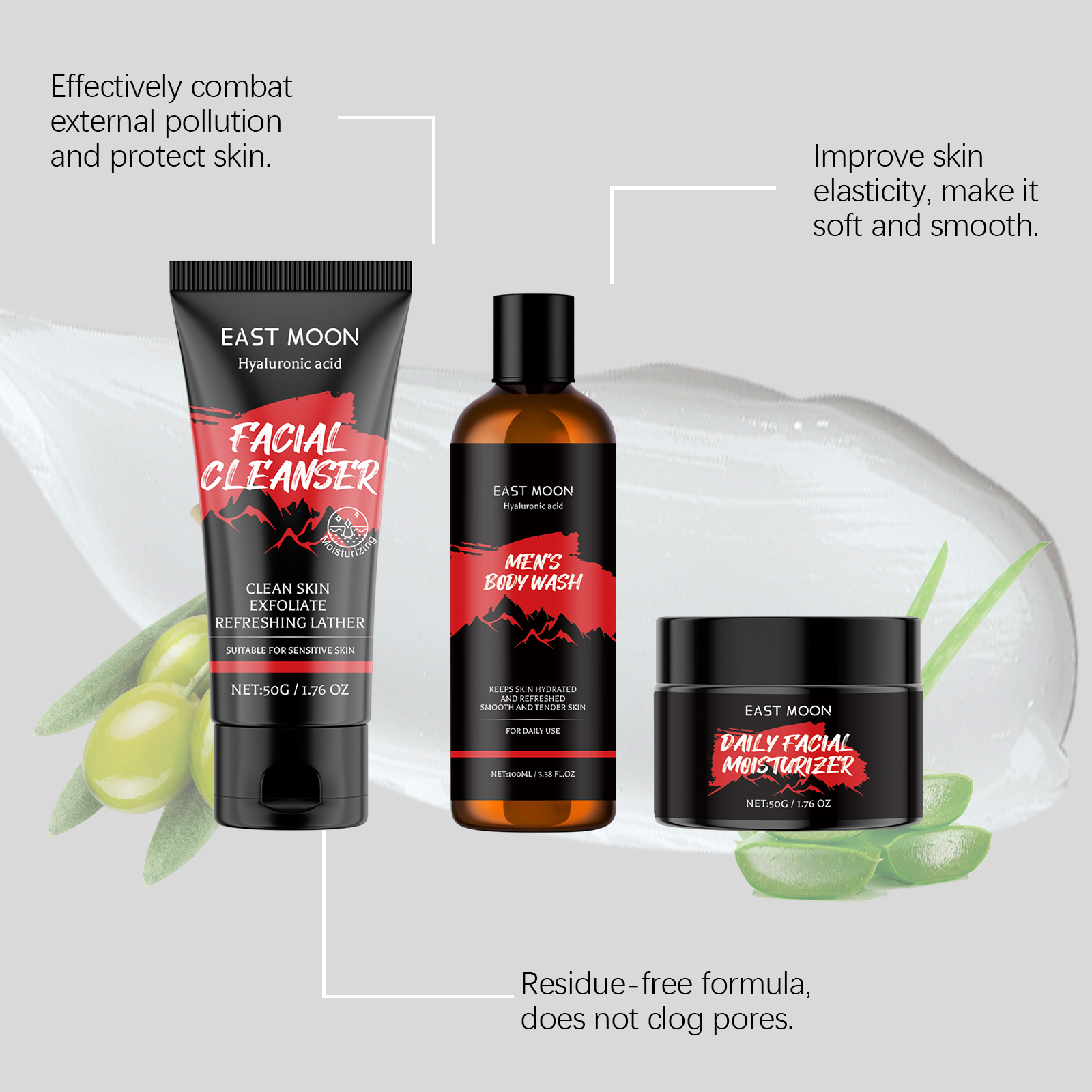 East Moon Men's Bath And Skin Care Set, Face And Body Multi-In-One Cleaning And Moisturizing