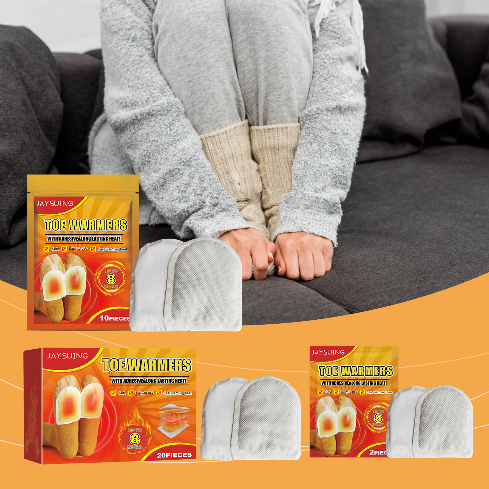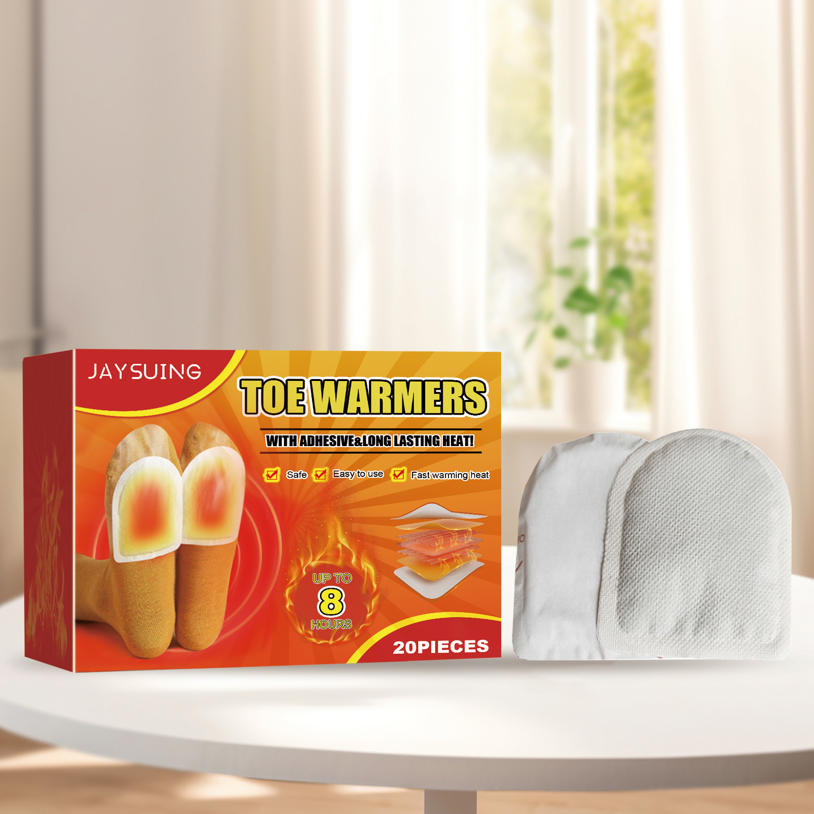 我们的暖足贴(盒装)含有活性炭、木粉、粘合剂。它可以快速启动,让你在寒冷的天气里保持舒适。它的使用方法很简单:打开包装后,取出贴片,贴在袜子的外面,贴片将在15-30分钟内开始加热,保温效果可持续6-8小时。并且可以连续加热长达8小时,全天候温馨护理,稳定可靠。