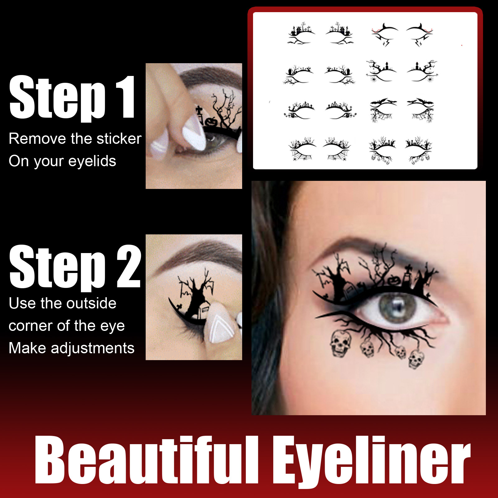 EELHOE Halloween Eyeliner Patch, Scary Fashion Party Makeup Kit Bat Spider Decorative Eyeliner Eyeshadow Patch
