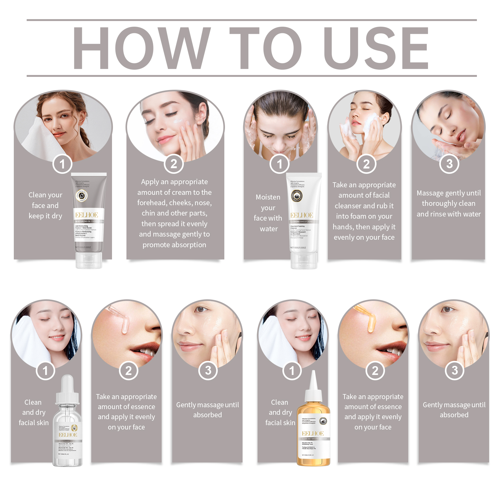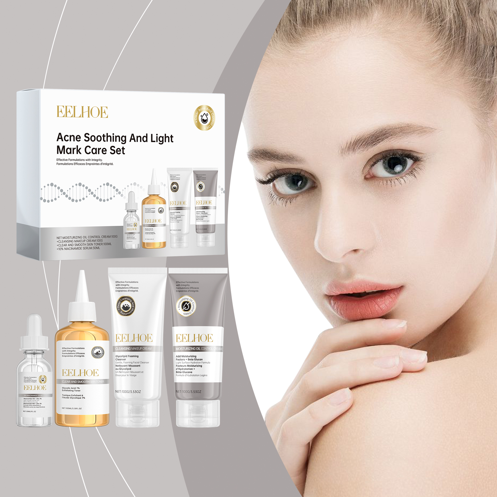 EELHOE Acne Care Set, Brightening Skin Gentle Moisturizing Repair Skin Moisturizing facial set