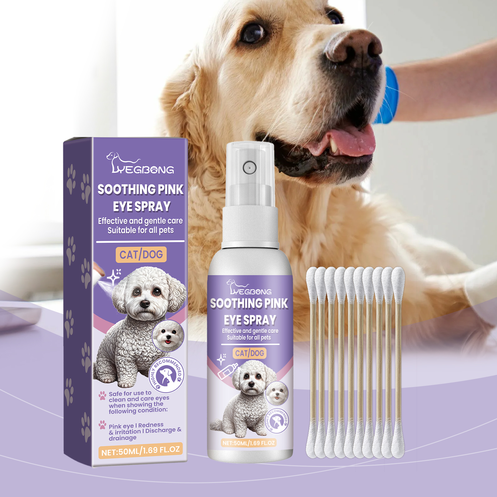 Yegbong Pet Eye Care Spray, Gently Cleans Tear-Stained Pet Eye Moisturizing Spray