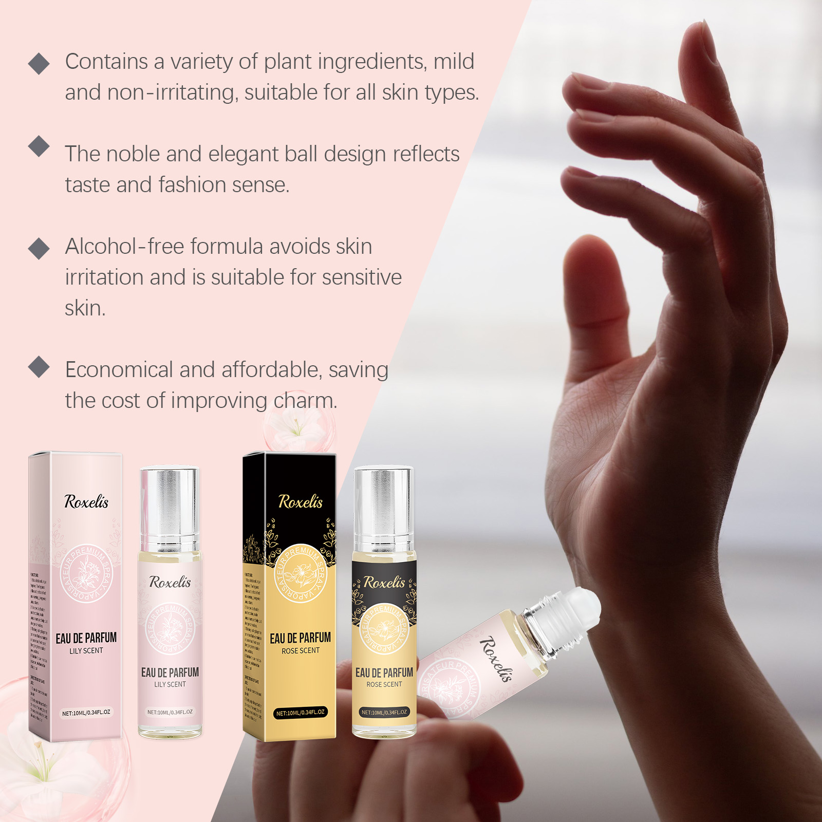 Roxelis Rolling Perfume Series, Flowers Lasting Fresh Light Fragrance Exudes Charm Keep Fragrance Portable Rolling Perfume