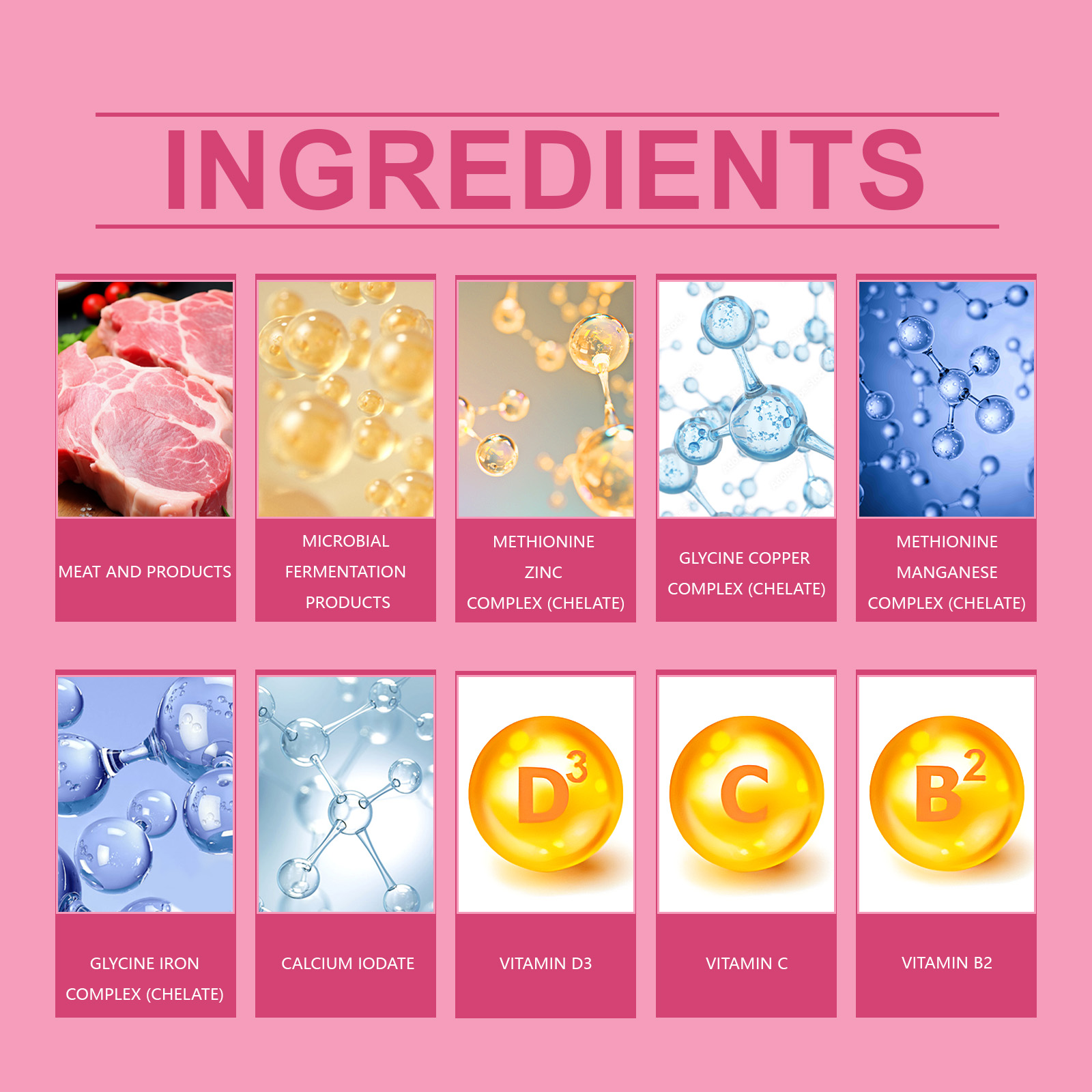 | 成分 | 肉类及制品、微生物发酵类制品、蛋氨酸锌络(螯)合物 |