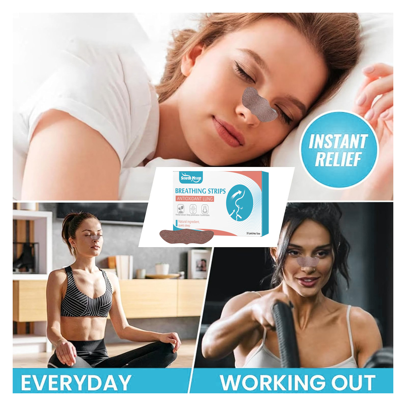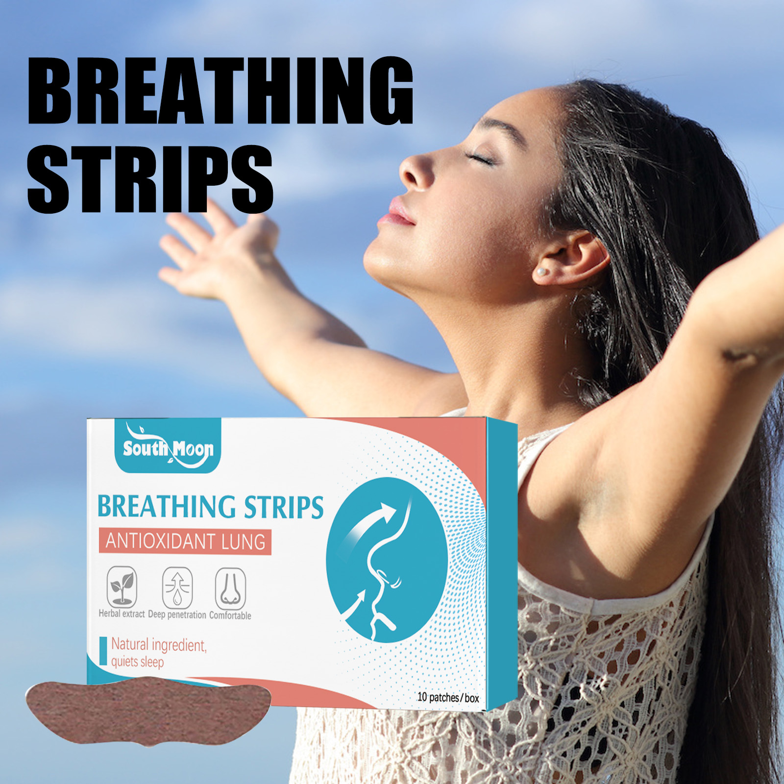 South Moon Breathing Strips, Anti-snoring Sleep Care Anti-Snoring Nasal Ventilation Care Nasal Patch
