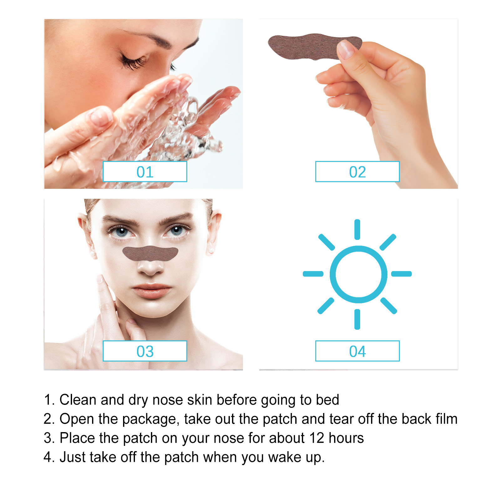 我们的通气鼻贴含有甘草根提取物、薄荷提取物、当归提取物。它可以有助于打开鼻腔通道,提高机体的能量水平,减轻因呼吸困难而引起的疲劳。它的使用方法很简单:睡前清洁并擦干鼻子皮肤,打开包装取出贴片,撕掉背膜后将贴片贴在鼻子上约12小时,醒来将产品撕下即可。使用后可以帮助您呼吸顺畅,缓解打鼾,保证夜晚的睡眠质量,让整个人早上起来神清气爽。