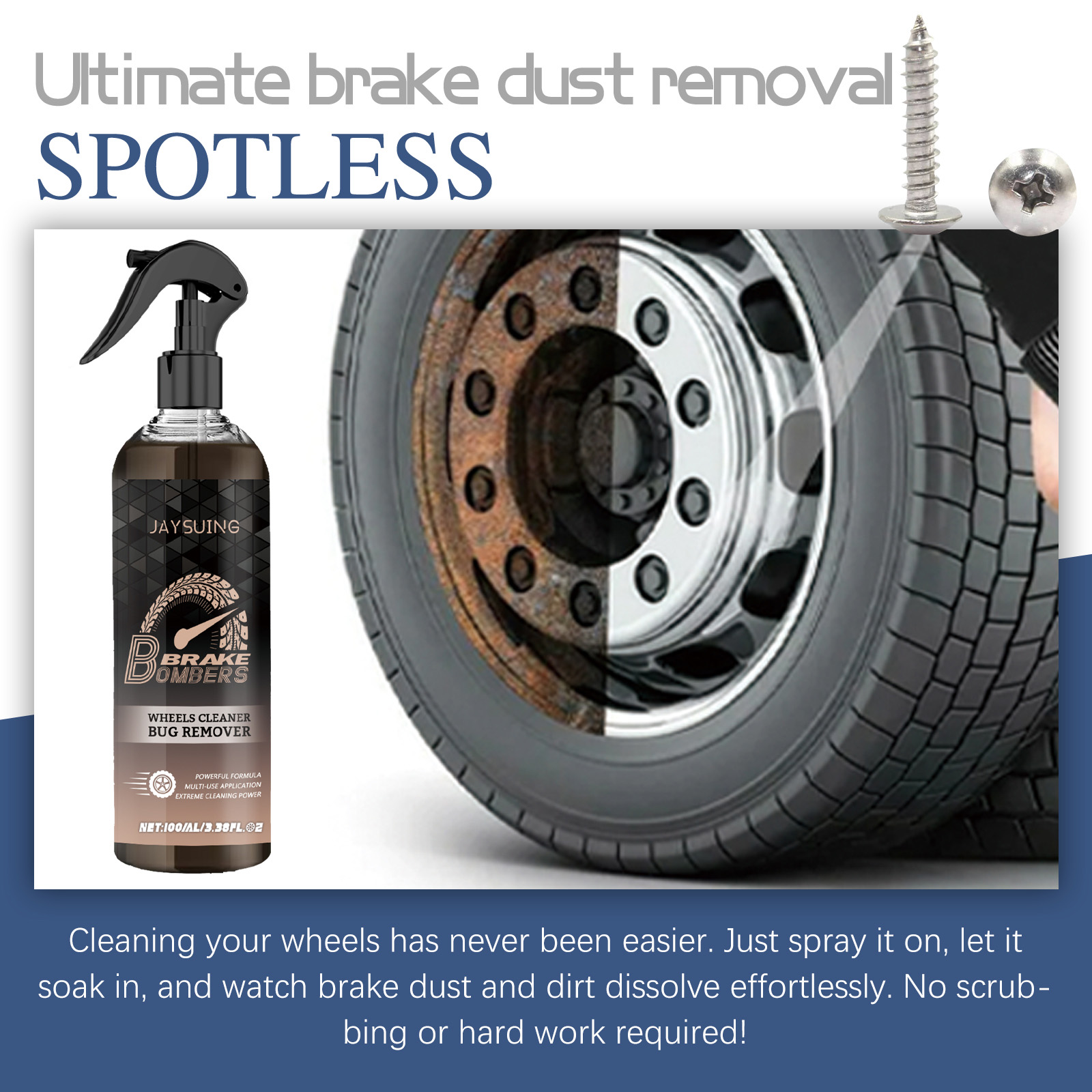我们的汽车刹车清洗剂含有小苏打、柠檬提取物。它可以容易溶解汇晨和污垢,防止损坏车轮表面,确保强大的清洁而不损害表面的完整性。它的使用方法很简单:清理车轮内外的杂物,按下喷雾器,喷在车轮上,等待5分钟使其溶解。汽车刹车清洗剂去污抛光、除锈,保养清洁,清除汽车污渍,使其焕发一新,完全去除污垢。
