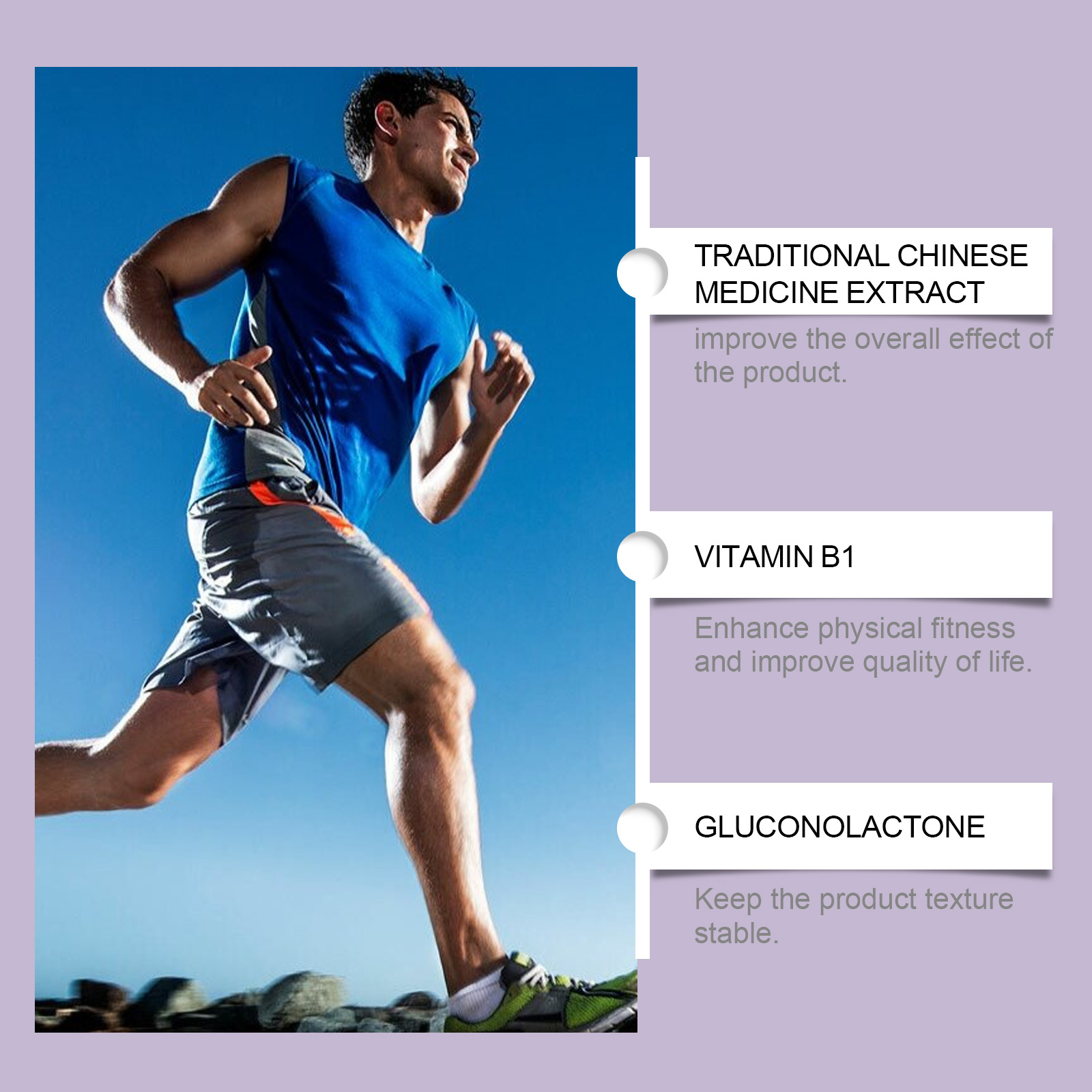 | 成分 | 中药提取物,葡萄糖酸内脂,维生素b1 |