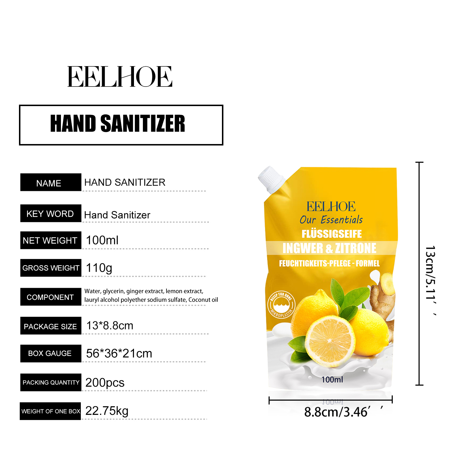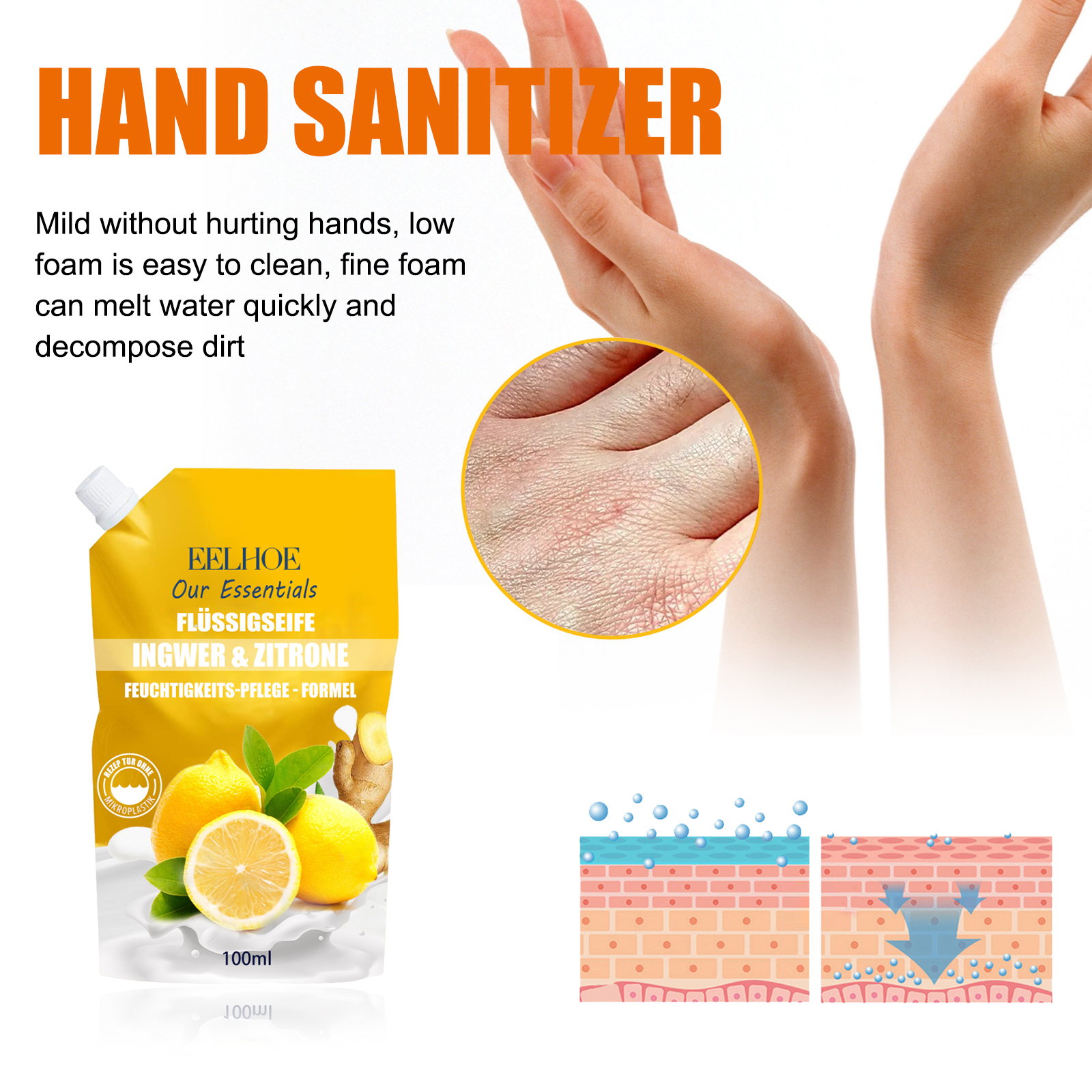 EELHOE Hand Sanitizer, Gentle Hand Cleanser, Decontamination, Moisturizing And Long-Lasting Portable Hand Sanitizer