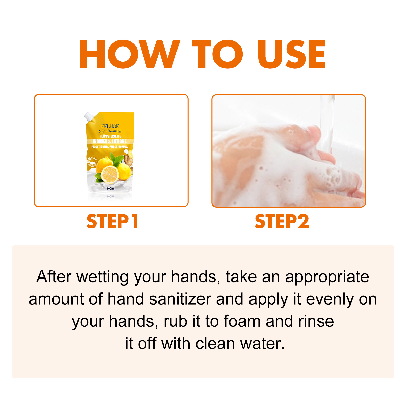 我们的洗手液含有芒果提取物、生姜提取物。它可以迅速融化水和分解污垢。它的使用方法很简单:湿手后,取适量消毒洗手液均匀涂抹于双手,揉搓起泡后用清水冲洗干净。并且成分安全,使用放心。
