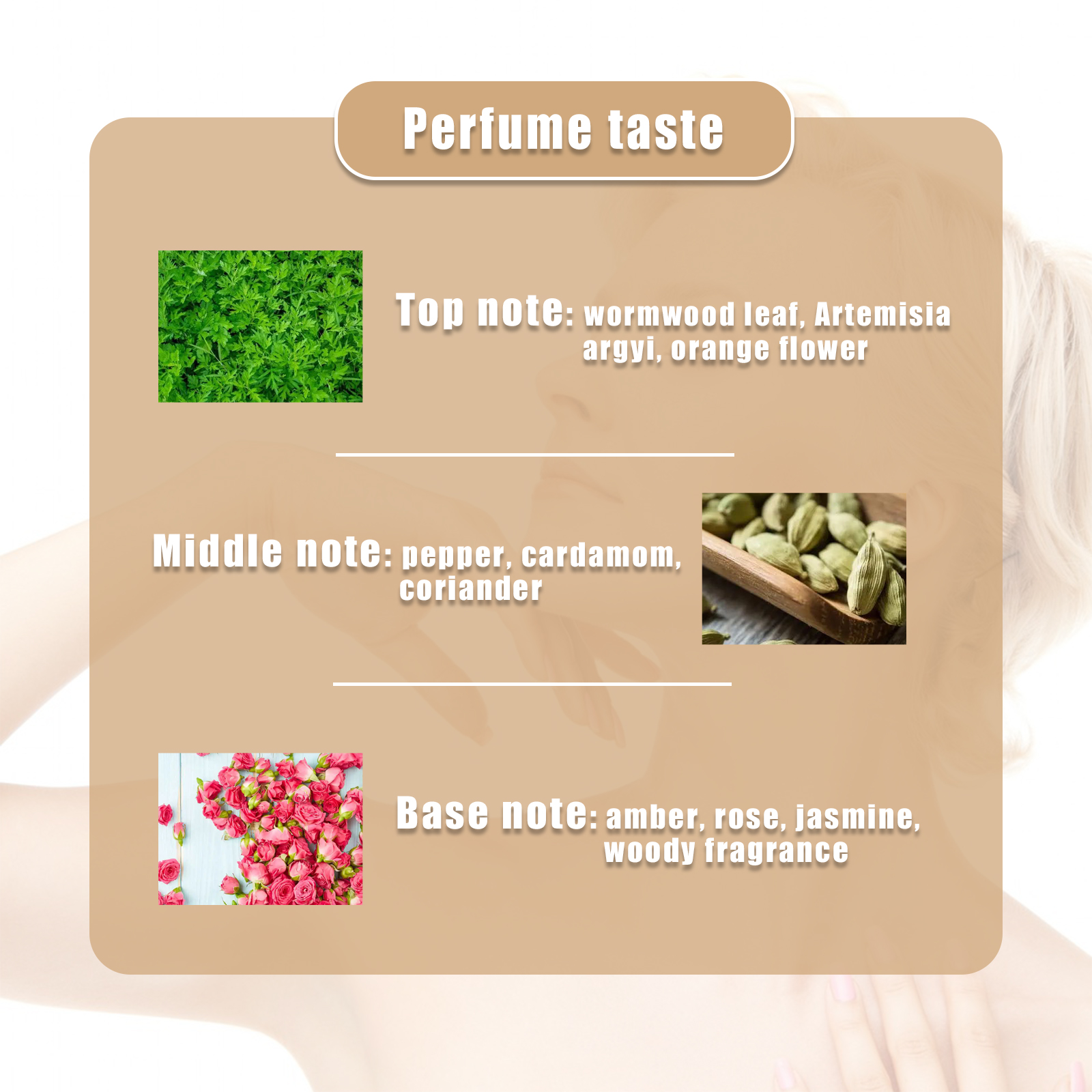 我们的白茶香水含有艾草叶、艾蒿、橙花。它可以给人带来情感愉悦,舒缓情绪,缓解身体疲劳,清爽不油腻,展示气质,有助于突出个人形象,增加个人自信和魅力。它的使用方法很简单:让喷雾器离身体10-20厘米,喷出雾气,让香水均匀地落在身上,留下淡淡的香味。清新持久的香味,气味清新爽朗,去除异味、体味,便于携带和使用,让自己随时散发出清新迷人的芬芳。