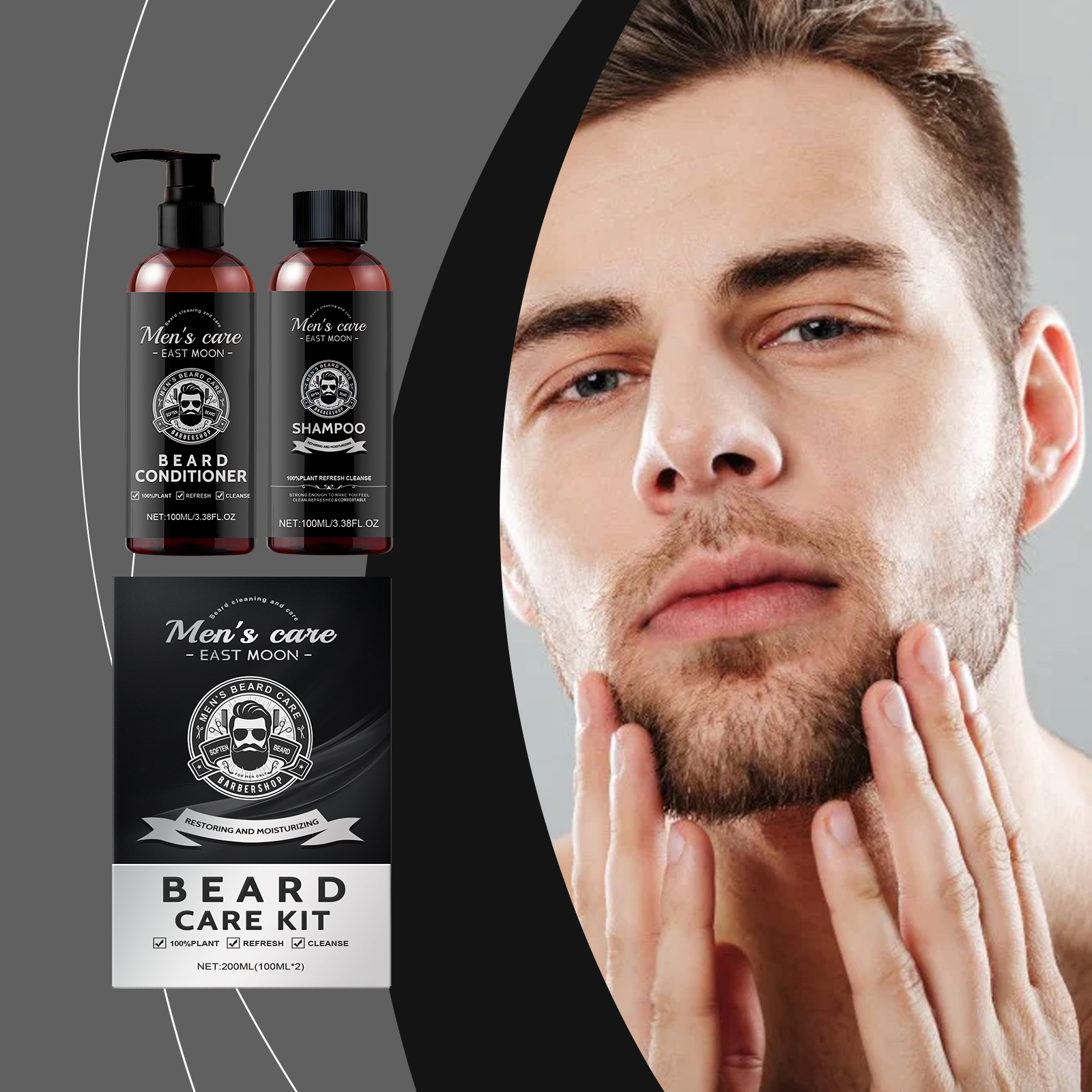 East Moon Beard Wash And Care Two-Piece Set, Gentle Moisturizing Repair Beard Hair Frizzy Soft Cleaning Care