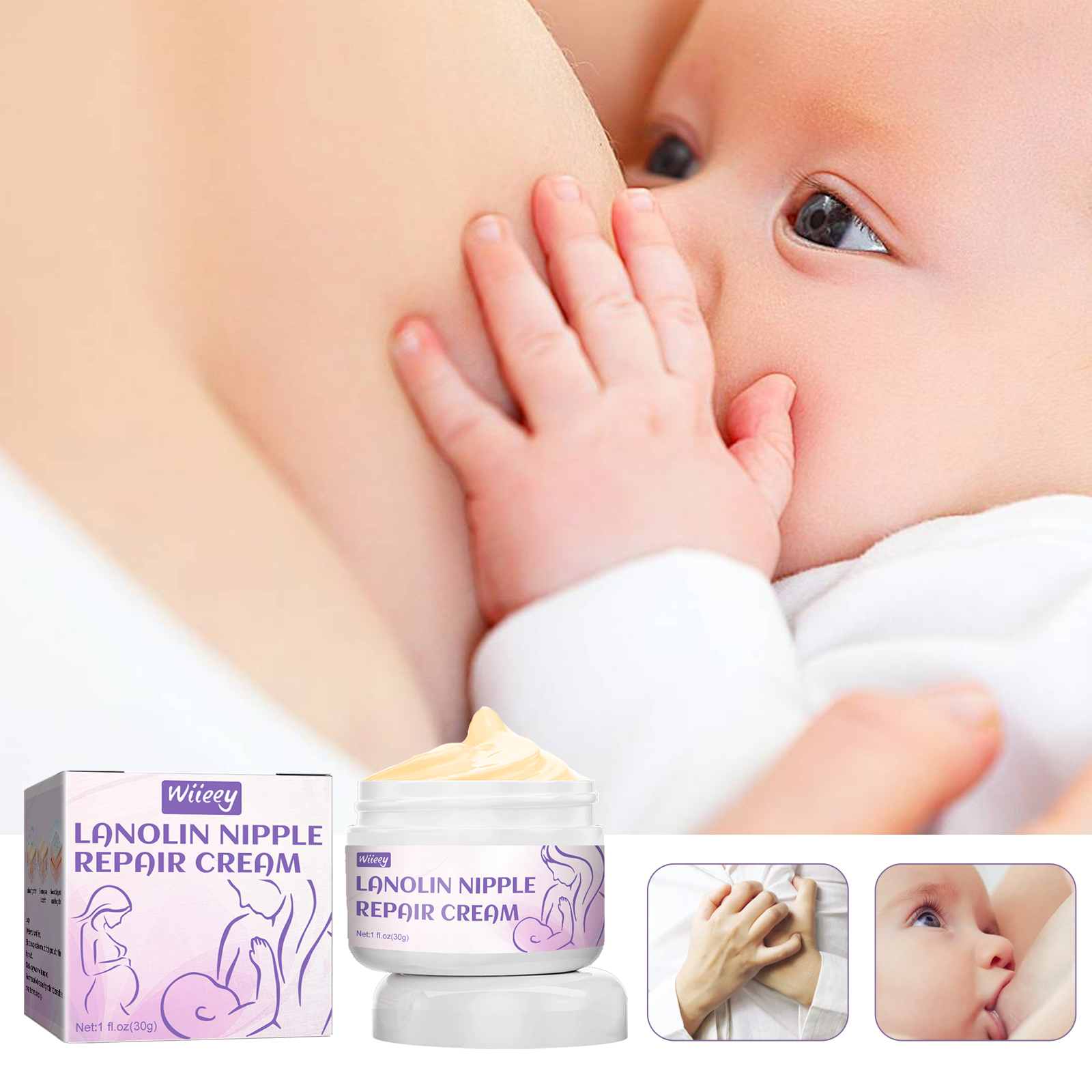 我们的羊毛脂胸部护理霜含有羊毛脂。它可以舒缓修复,有效缓解疼痛。它的使用方法很简单:使用前要洗手,取适量本品涂于指尖,均匀地涂在乳头上。并且可以快速滋润、修复干燥及脱皮的肌肤,强化肌肤,减少皮肤脱皮。