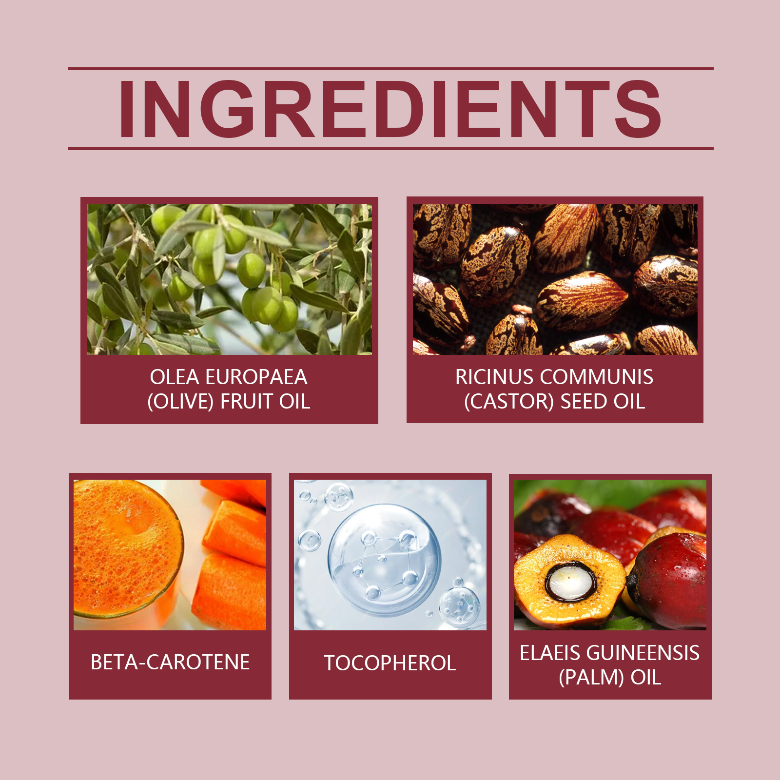 | 成分 | 棕榈油、生育酚(维生素E)、蓖麻籽油 |