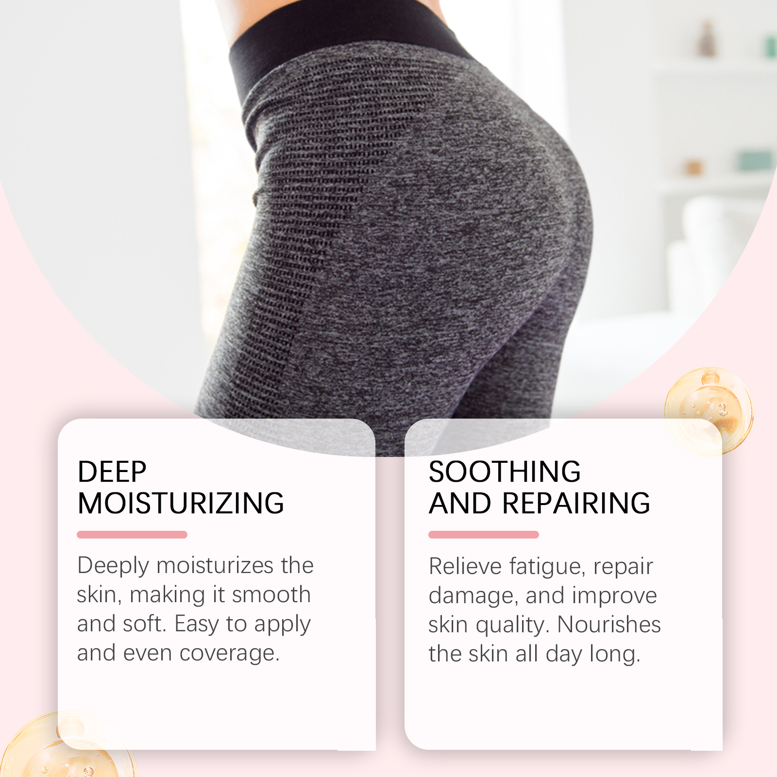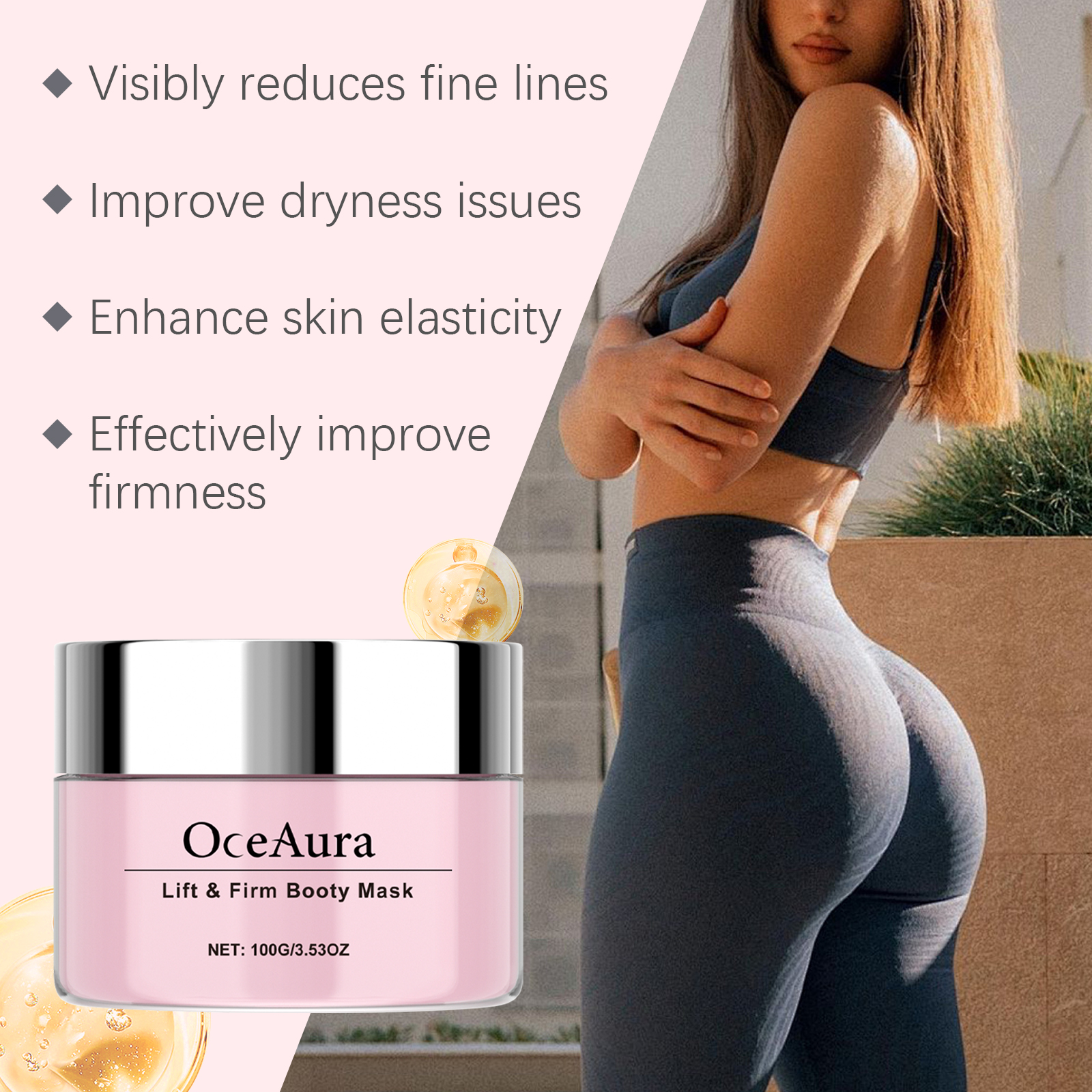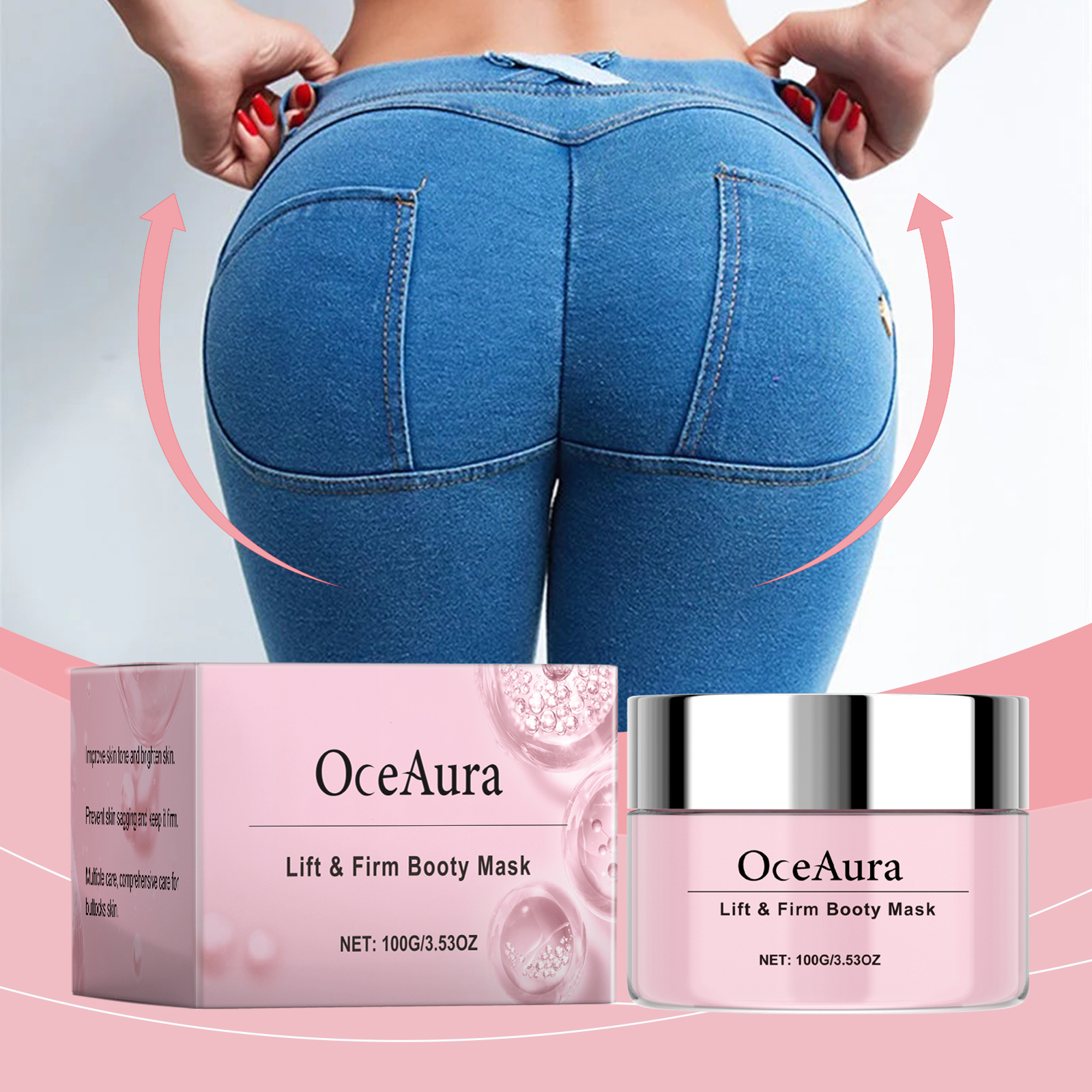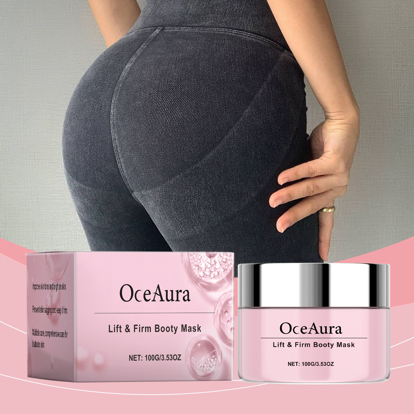 我们的臀部按摩霜,由海藻提取物、胶原蛋白、生育酚精心调配而成。专为深层滋润肌肤,使肌肤光滑柔软设计。使用方法极为便捷:1.清洗臀部并保持干燥。2.取适量面霜均匀涂抹于臀部,轻轻打圈按摩,促进吸收。有效改善臀部肌肤紧致度,增强弹性。易于使用和快速的结果。