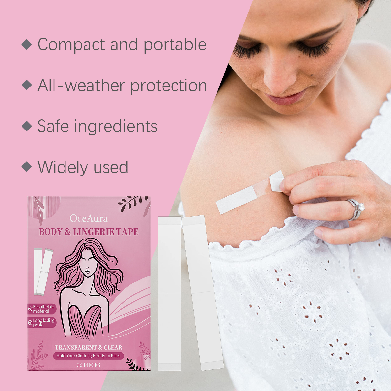 我们的防走光贴,由OPP、低过敏胶精心调配而成。专为有效防止衣物滑落走光,保障隐私设计。使用方法极为便捷:1.从背面取下衬里,露出背面的粘合剂;2.涂抹在需要的皮肤部位;3.取下前衬套,并把它粘在衣服上你想固定的地方。具有强大的粘贴效果,确保稳定性和可靠性。使用低过敏性胶,温和,不刺激皮肤。