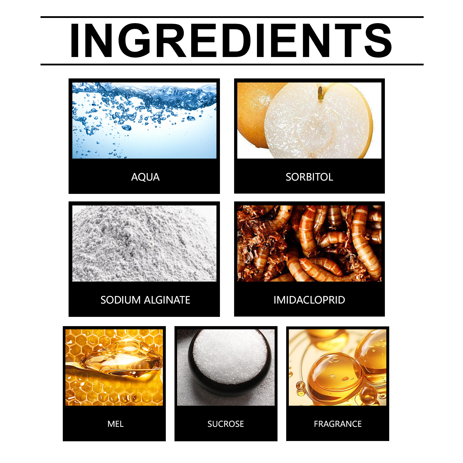 我们的蟑螂诱饵站,由蔗糖、甘油精心调配而成。专为防止蟑螂传播疾病设计。使用方法极为便捷:将饵料切成块,取出保护盖,剥去双面胶带的保护层,贴在蟑螂经常出现的地方表面。并且可以有效抑制蟑螂的再次出现。