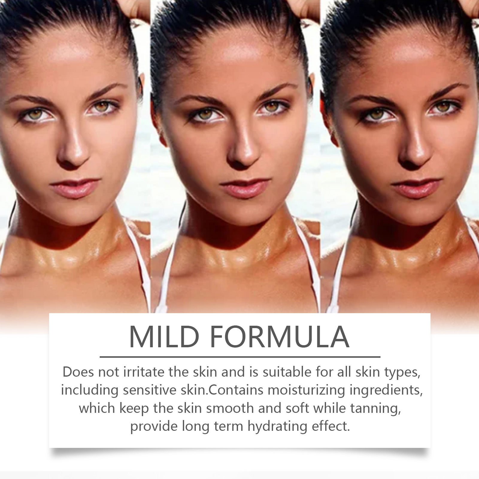 我们的皮肤美黑调光液含有椰子油、橄榄油。它可以在晒黑皮肤的同时保持皮肤光滑柔软,提供长期保湿效果。它的使用方法很简单:取适量本品均匀涂抹于肌肤,按摩至吸收,避免敏感部位,四小时以上后效果更佳。并且可以提供深层保湿,保持肌肤水润而不干燥。