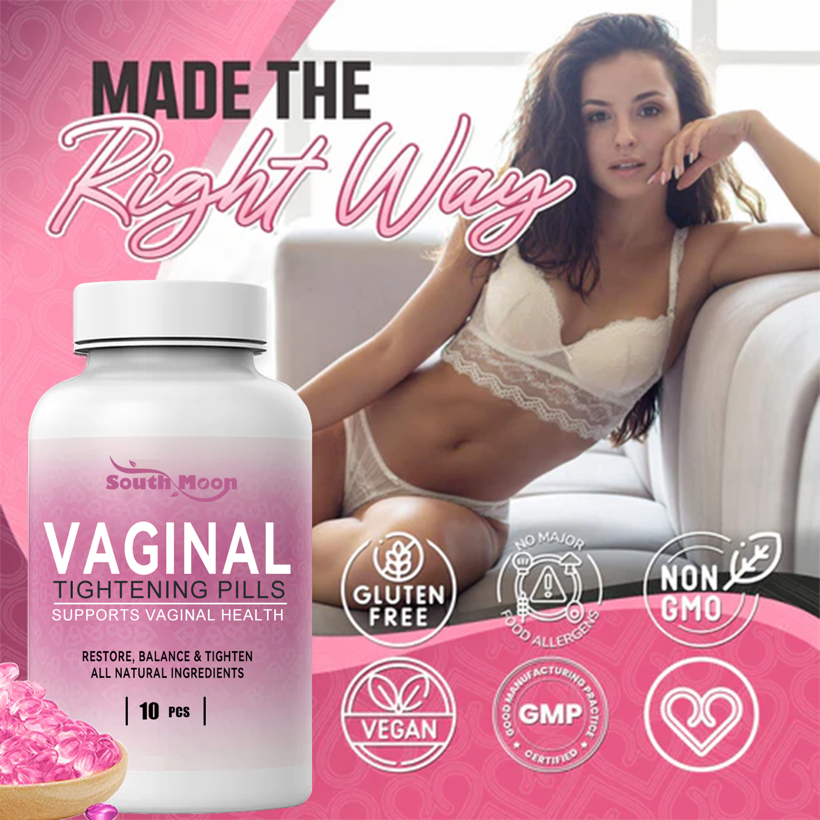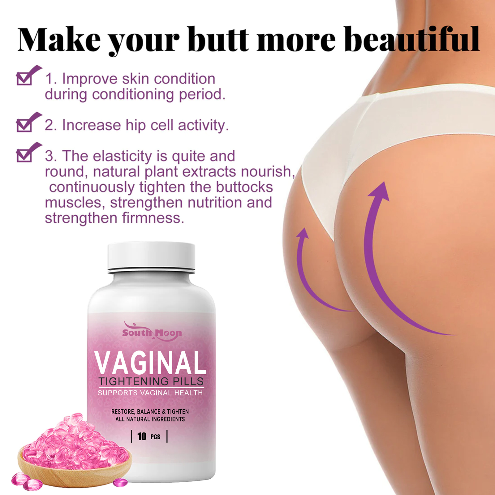 South Moon Vaginal Tightening Pills, Shape Moisturizing Care Buttocks Highlight Body Curves Beautiful Hips Capsule