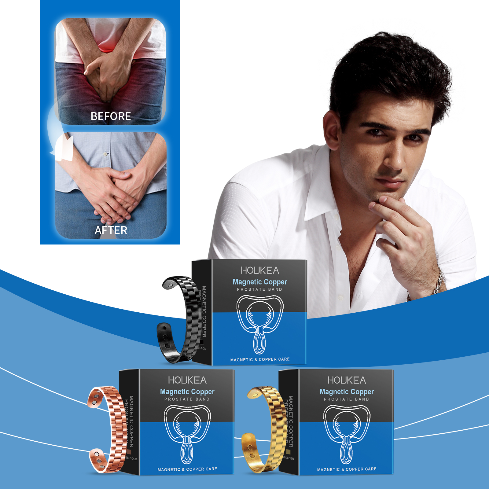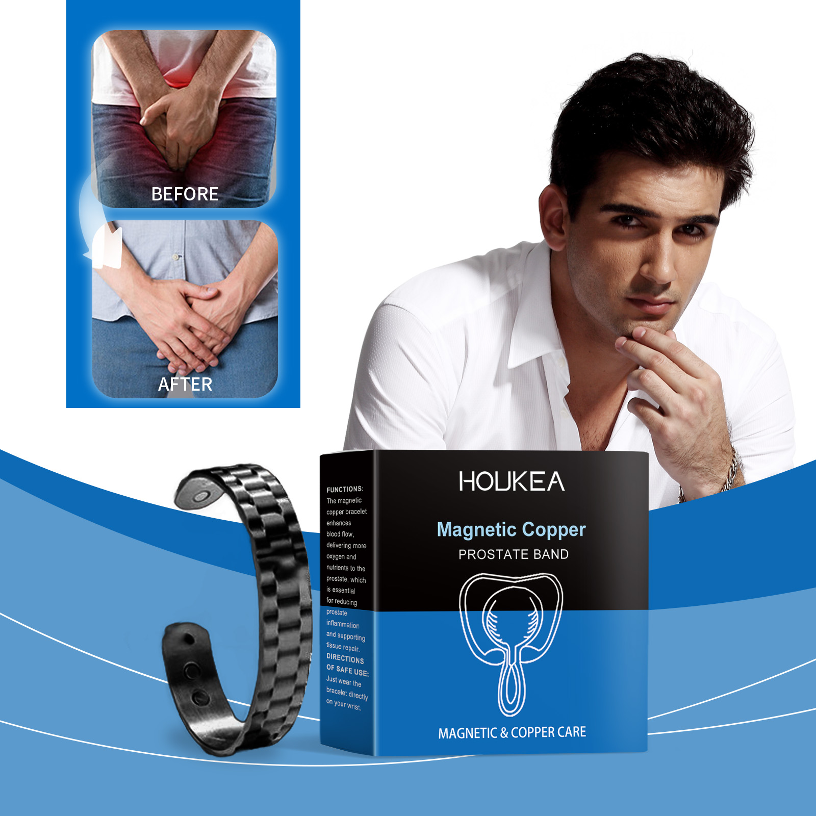 Houkea Men's Care Bracelet, Gentle Relief For Men's Discomfort Body Care Retro Fashion Accessory Bracelet