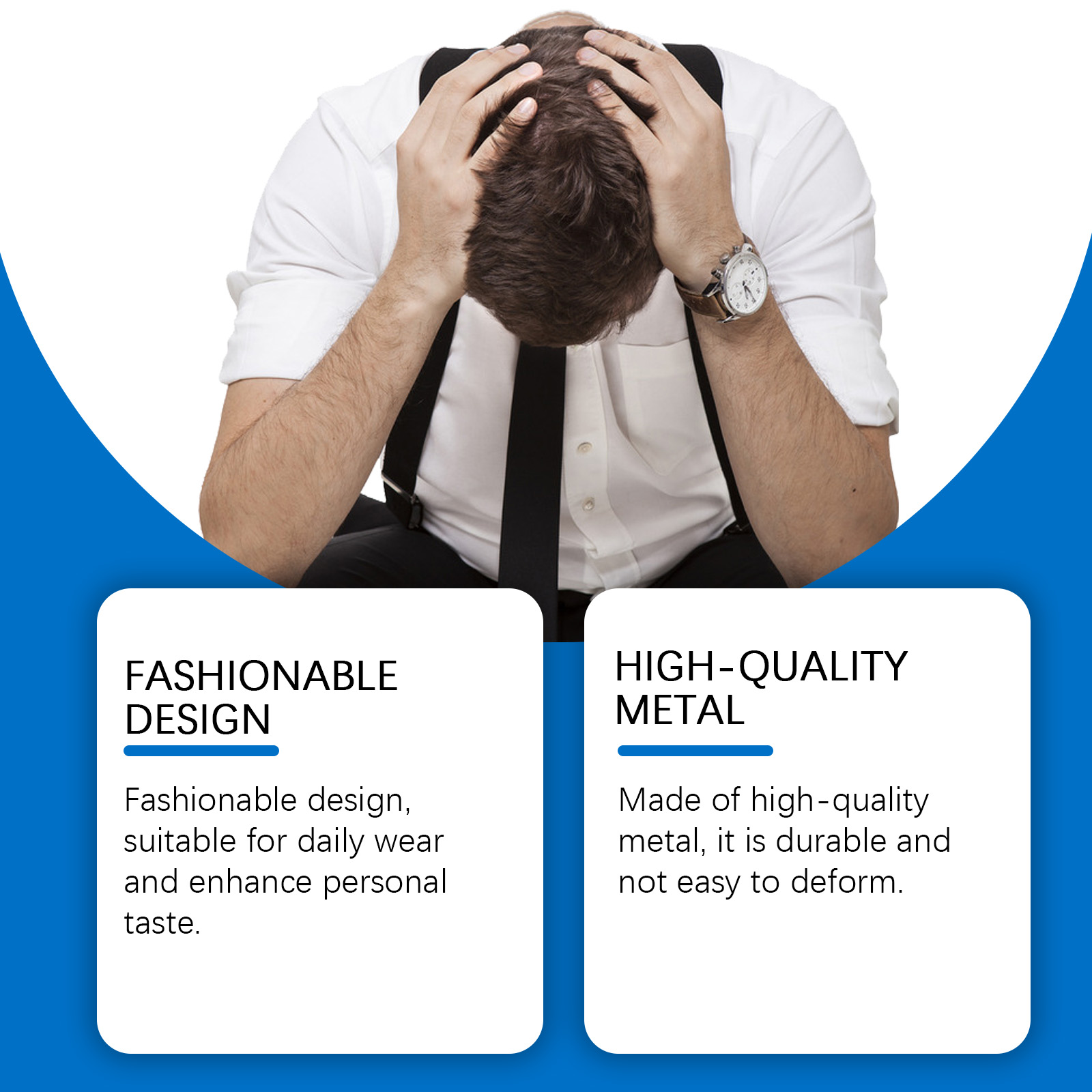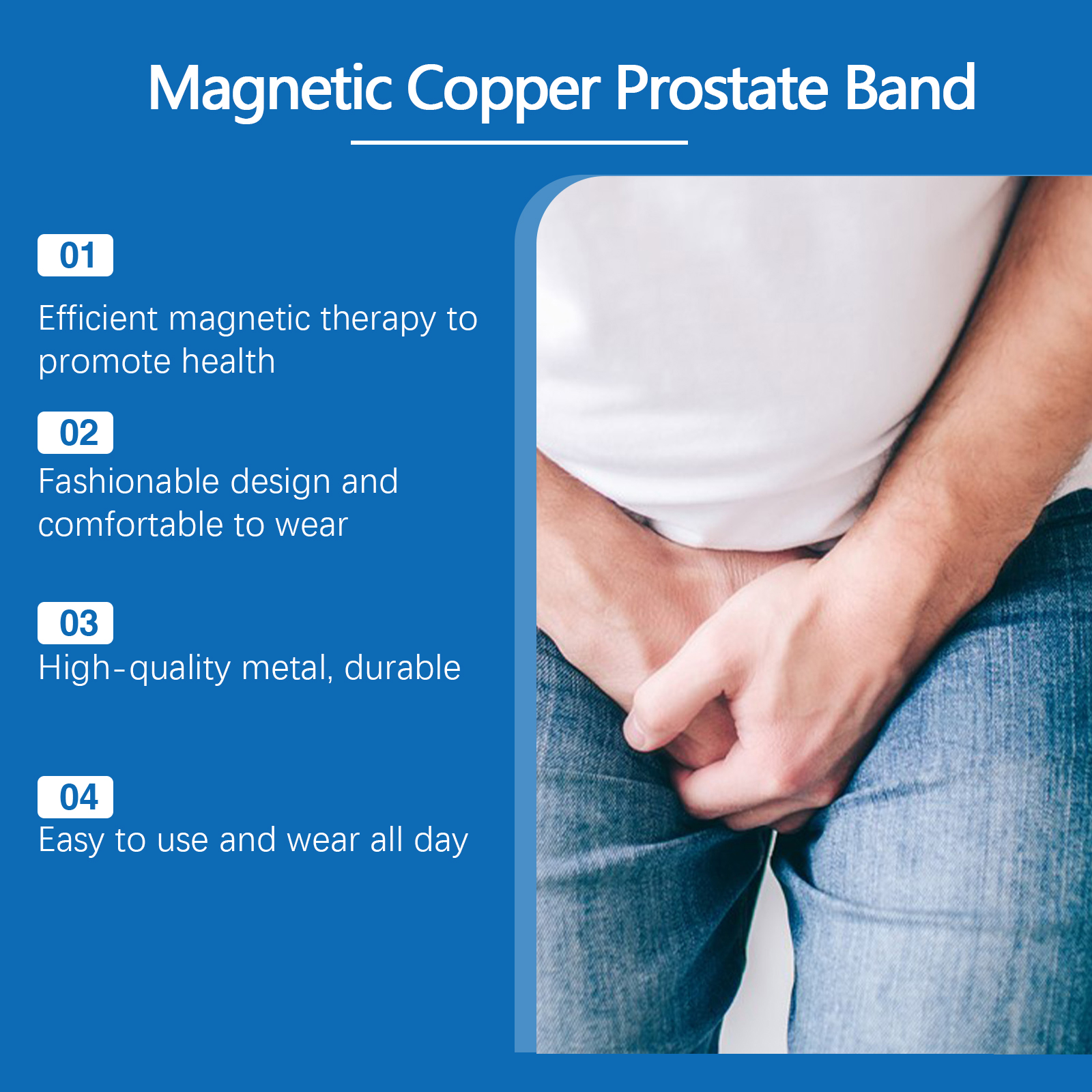 我们的男士护理手镯含有金属。它可以提供全天候保护,提高生活品质。它的使用方法很简单:把手镯直接戴在手腕上就可以了。并且采用优质金属制成,经久耐用,不易变形。