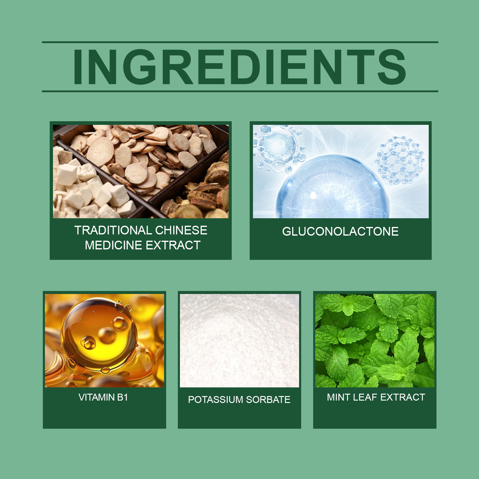| 成分 | 中药提取物,葡萄糖酸内脂,维生素b1 |