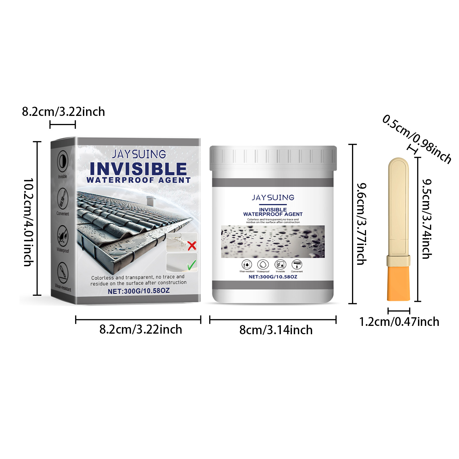 | 产品尺寸 | 防水胶:8*9.6cm,刷子:1.2*0.5*9.5cm |