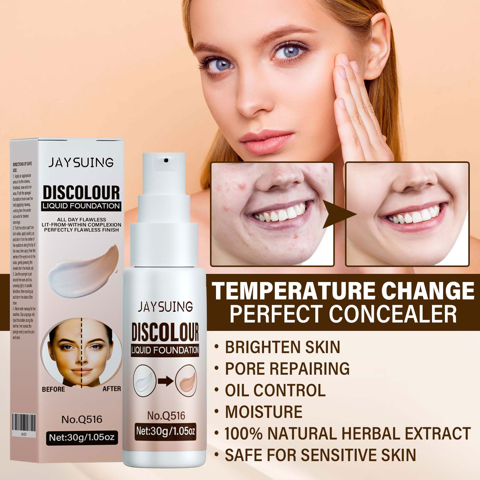 Jaysuing Warm Up Liquid Foundation, Skin Tone Liquid Foundation Brightening Portable Concealer Lasting And Not Easy to Fade