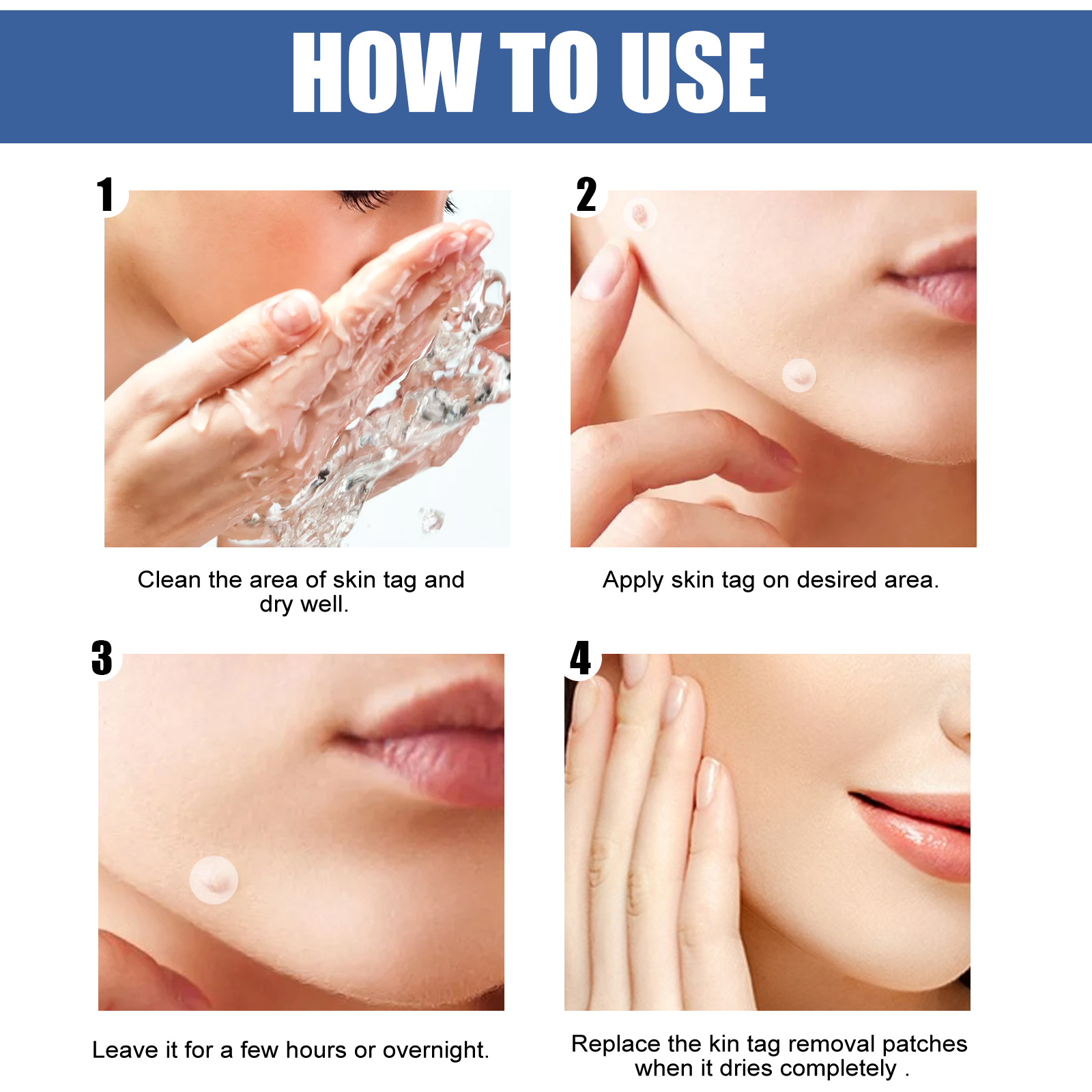 我们的克疣鸡眼贴含有茶树精油、侧柏、维生素E。它有助于去除皮肤标签。它的使用方法很简单:清洁皮肤标签区域并干燥,放置几个小时或过夜,在所需部位贴上皮肤标签,当标签完全干涸时,替换它的清除补丁。使用后直接渗透到受影响的区域,软化角蛋白溶解,去除痣。